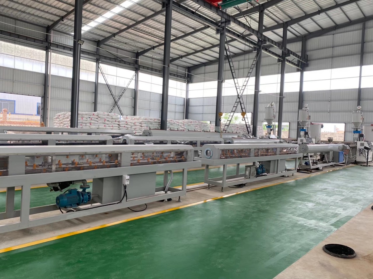 Máy đùn ống nhựa PVC vít đơn nhỏ: sử dụng hạt nhựa PVC, bộ máy chủ, khuôn, máy định hình, máy cắt và máy kéo.