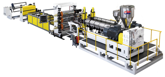 Máy đùn tấm nhiều lớp bao gồm ép đùn, tạo lịch, lực kéo và cán. Các bộ phận chính được xử lý đặc biệt là chống mài mòn, chống ăn mòn, chịu nhiệt độ cao.
