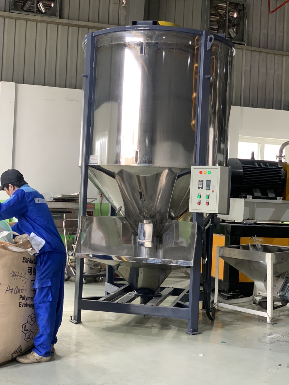 Máy trộn đứng 1000kg là loại máy trộn đứng, công suất lớn và có dạng hình phễu. Khi hoạt động, máy sẽ sử dụng trục vít kết hợp với cánh dao để trộn đều các nguyên liệu trong thùng. Ngoài ra, máy trộn còn có thể kết hợp với hệ thống sấy nhựa để giúp tiết kiệm thời gian và chi phí sản xuất cho doanh nghiệp.