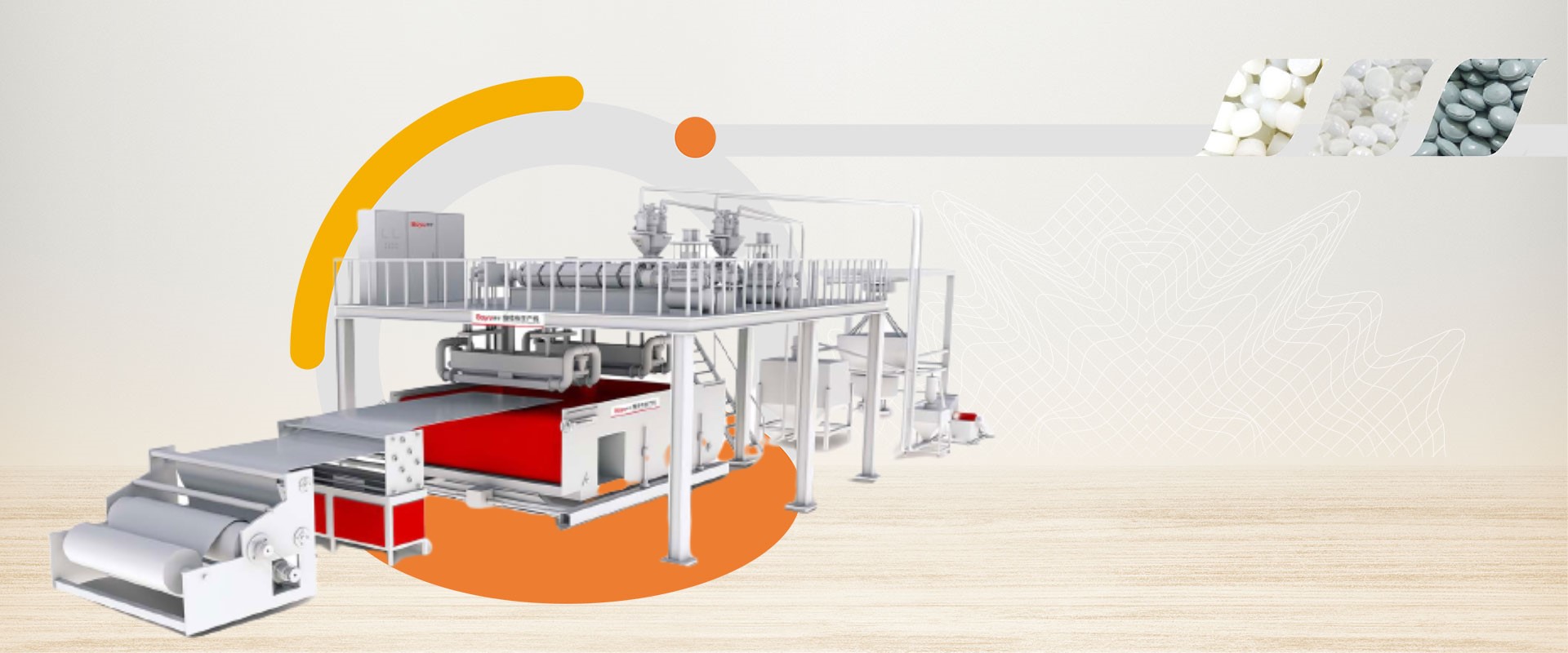 Dòng JWM Máy đùn vải không dệt chuyên dùng trong sản xuất vải không dệt PP. Thông thường nó sử dụng hai máy đùn nối tiếp nhau.